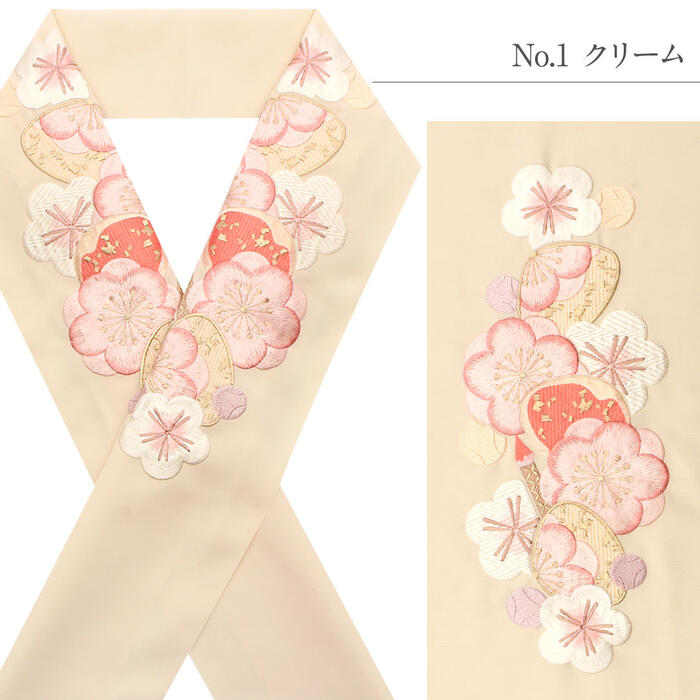 色 全4色(クリーム、ホワイト×薄ピンク、ホワイト×レッド、ホワイト) 柄 梅に貝合わせ 素材 衿地:ポリエステル100% 刺繍糸:レーヨン100%(金属糸使用の場合あり) 製造 日本製 備考 ※実際の商品と同じ色合いに画像修正をしておりますが、環境やモニターの違いにより多少色の違いが出て来ることがあります、ご了承ください。